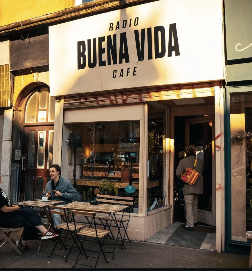 We started out in October 2020, from the window of our local record shop and In November 2022, we opened the doors to Cafe Buena Vida, where Radio Buena Vida now broadcasts from its location in the street-facing window, which brought together the original idea of a different kind of radio station, set in an accessible community space, serving up quality snacks and drinks to an ever changing soundtrack of shows.